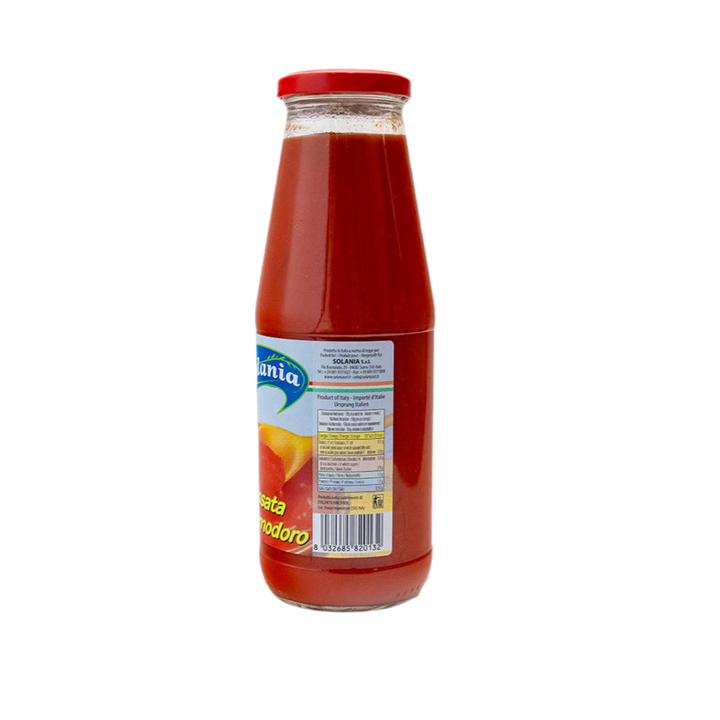 Passata Solania is made with the best raw materials of the territory, preserving all the organoleptic qualities thanks to the traditional glass packaging. Passata Solania has a fresh, Mediterranean, authentic flavour, ready to wrap a stuffed pasta or a classic lasagna. Its full-bodied flavour also harmonises perfectly with red meats in more complex recipes. Also worth trying for a classic eggplant parmigiana.